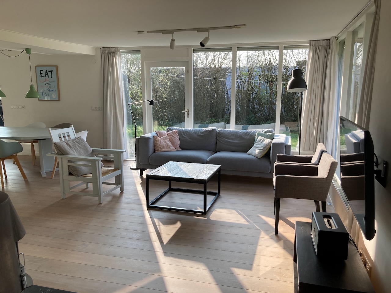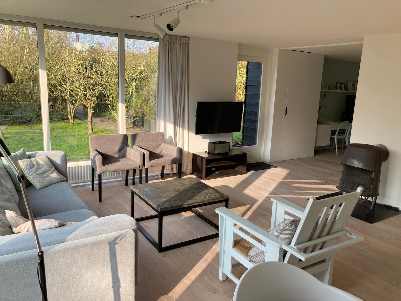 Woonkamer & keuken Ruime zithoek Ruime zithoek Ruime zithoek Ruime zithoek Eettafel voor 8 personen Extra zit/speelhoek Deense houtkachel Ruime zithoek Ruime nieuwe keuken Ruime nieuwe keuken Ruime nieuwe keuken